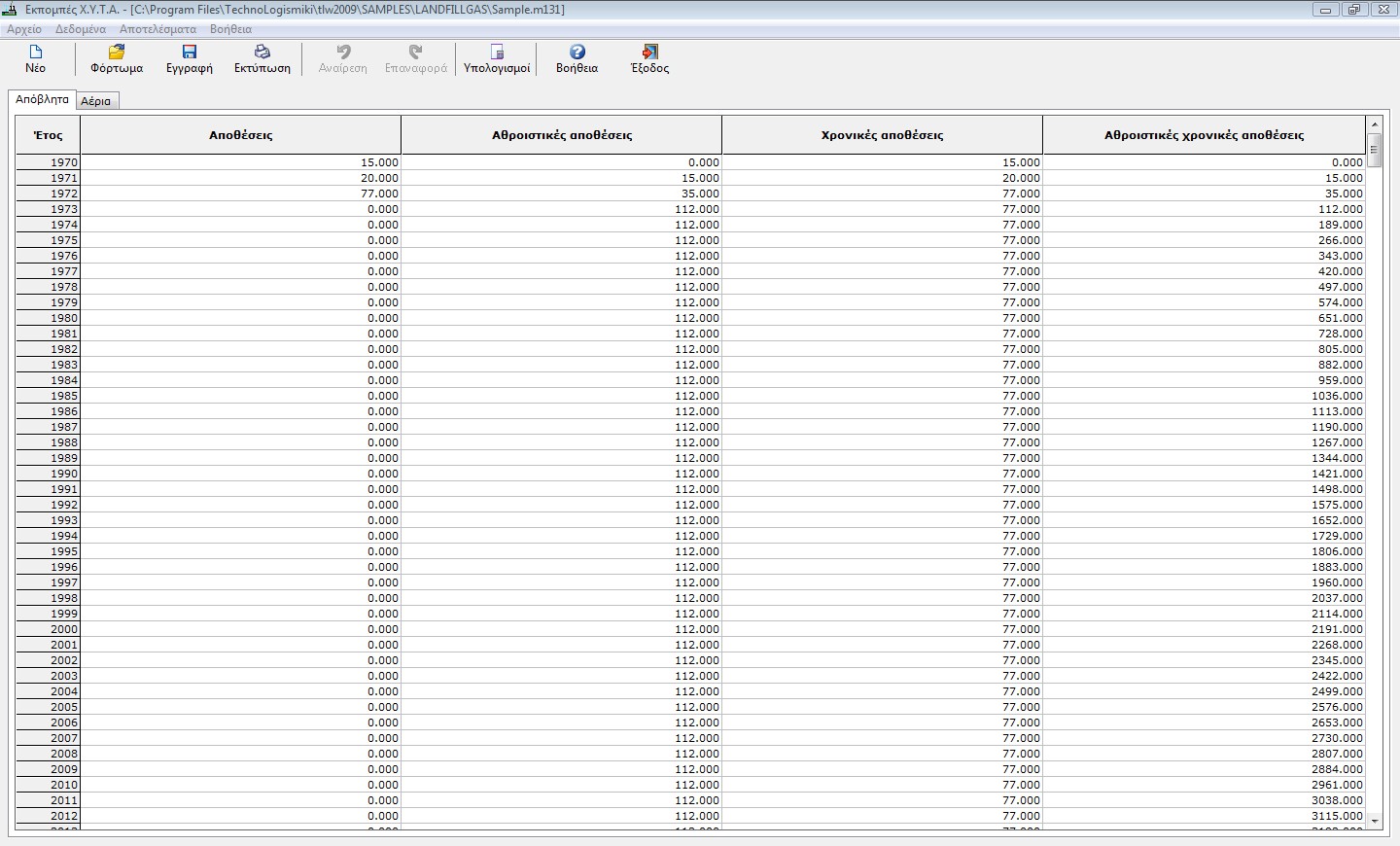 Το πρόγραμμα αυτό βασίζεται στο γνωστό μοντέλο LandGEM v3.02 της EPA. Είναι ένα αυτοματοποιημένο εργαλείο που μπορεί να χρησιμοποιηθεί για την εκτίμηση των ρυθμών εκπομπής όλων των αερίων ενός Χώρου Υγειονομικής Ταφής Απορριμάτων, του μεθανίου, του διοξειδίου του άνθρακα, οργανικών συστατικών εκτός μεθανίου και μεμονωμένους αέριους ρύπους. Το πρόγραμμα περιλαμβάνει δυο σετ εξ` ορισμού παραμέτρων, τις τιμές κατά CAA και τις τιμές ευρετηρίου (Η.Π.Α.). Οι τιμές κατά CAA βασίζονται στους ομοσπονδιακούς κανονισμούς (Η.Π.Α.) για Χ.Υ.Τ.Α. όπως περιγράφονται από την Clean Air Act (CAA) και μπορούν να χρησιμοποιηθούν για να προσδιοριστεί αν τα Χ.Υ.Τ.Α. υπόκεινται στις απαιτήσεις ελέγχου των κανονισμών αυτών. Οι τιμές ευρετηρίου βασίζονται στις παραμέτρους εκπομπής που υπάρχουν στην αναφορά της EPA`s "Compilation of Air Pollutant Emission Factors (AP-42)" και μπορούν να χρησιμοποιηθούν για τη δημιουργία εκτιμήσεων εκπομπών σε περιοχές όπου δεν υπάρχουν μετρήσεις πεδίου.