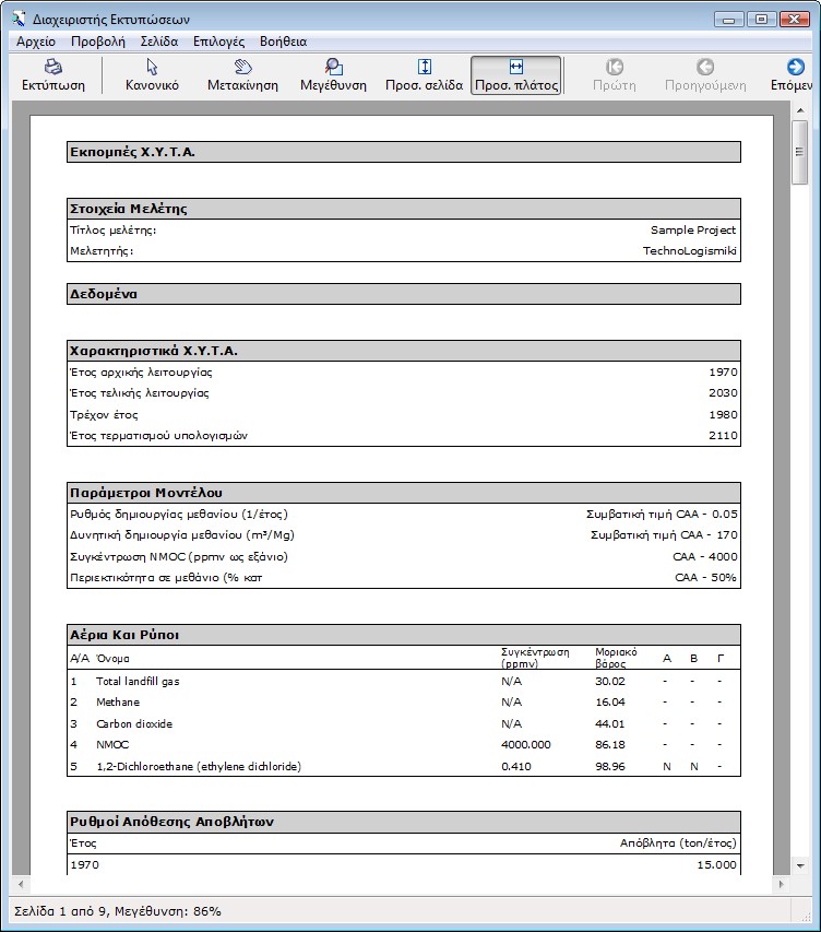 • Το πρόγραμμα είναι πλήρως συμβατό με τα μοντέλα LandGEM της EPA εκδόσεις v2.x και 3.x.