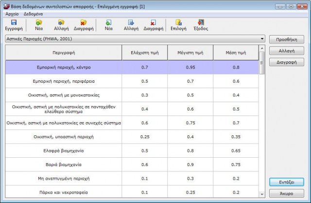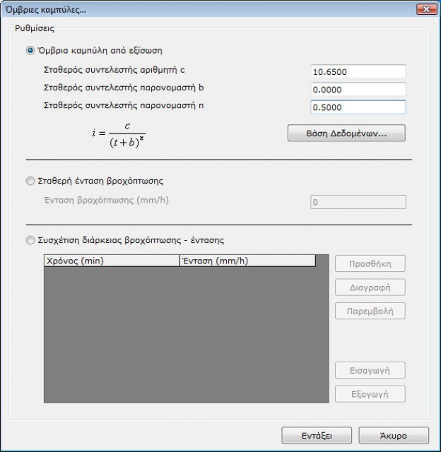 Υπολογισμός παροχών με απευθείας τιμές ή μέσω λεκανών απορροής.