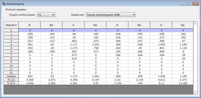 Το πρόγραμμα αυτό υπολογίζει τις παραμέτρους του χαρακτηριστικού κύματος με χρήση της μεθόδου SMB (Sverdrup - Munk - Bretschneider). Το μοντέλο SMB είναι το πλέον διαδεδομένο μοντέλο βραχυπρόθεσμης περιγραφής της καταστάσεως διαταραχής της θάλασσας.