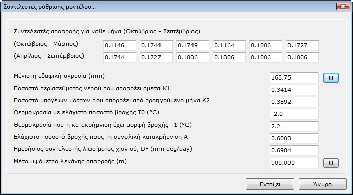 • Αυτόματη εκτίμηση από το μοντέλο βελτιστοποιώντας την τιμή του αριθμού Nash (αυτοσυσχέτιση) των παραμέτρων ρύθμισης.