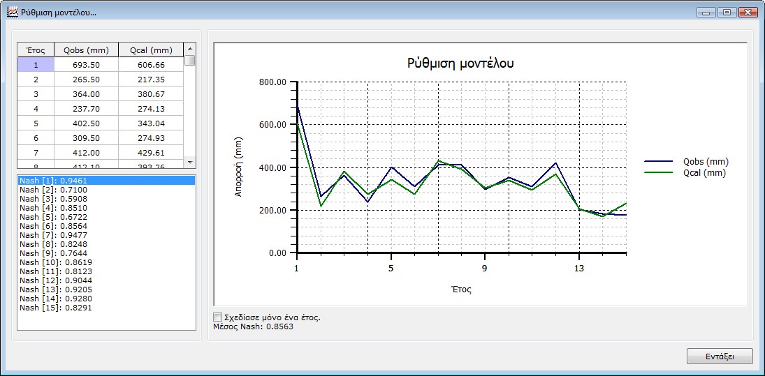 • Γράφημα ρύθμισης (calibration) χρησιμοποιώντας μηνιαία ή ετήσια αποτελέσματα graph χρησιμοποιείται για τη διευκόλυνση και την επιβεβαίωση της ρύθμισης.