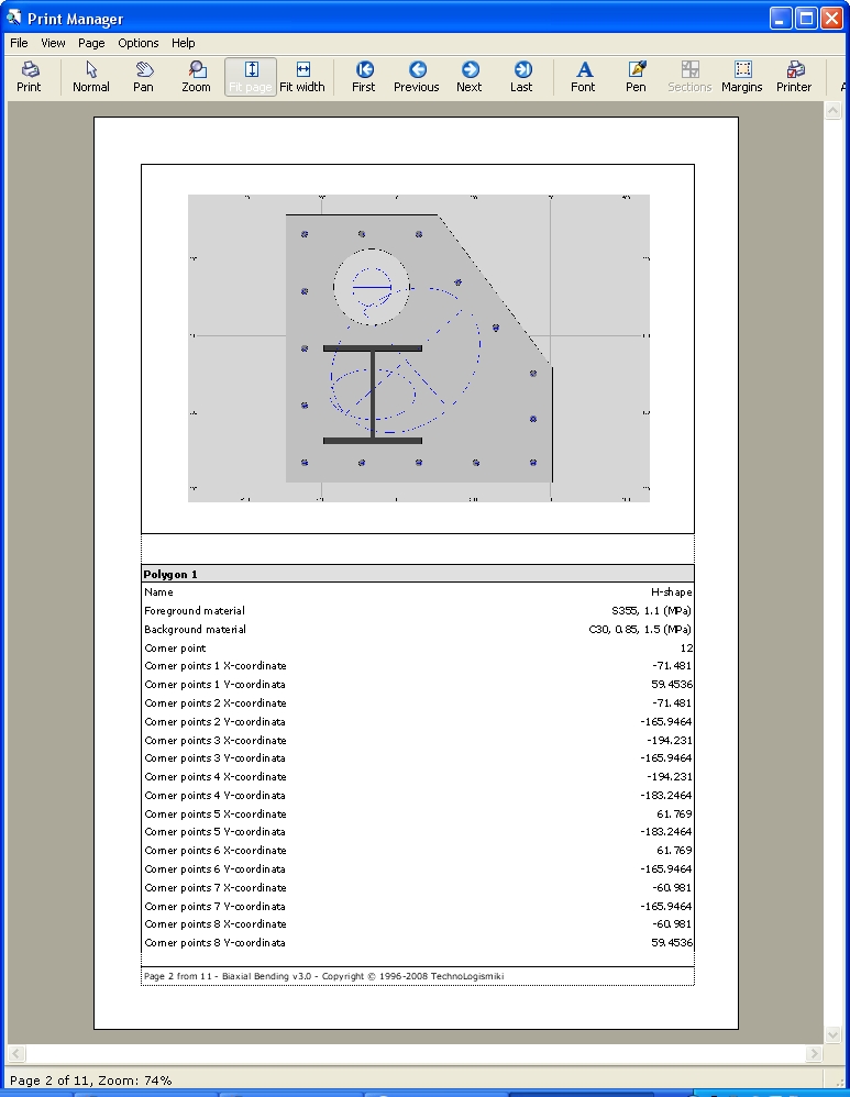 This program analyzes arbitrary sections in biaxial bending and axial load. Any problem in which the Euler-Bernoulli assumption (plane sections remain plane after bending) holds can be tackled. Examples include: