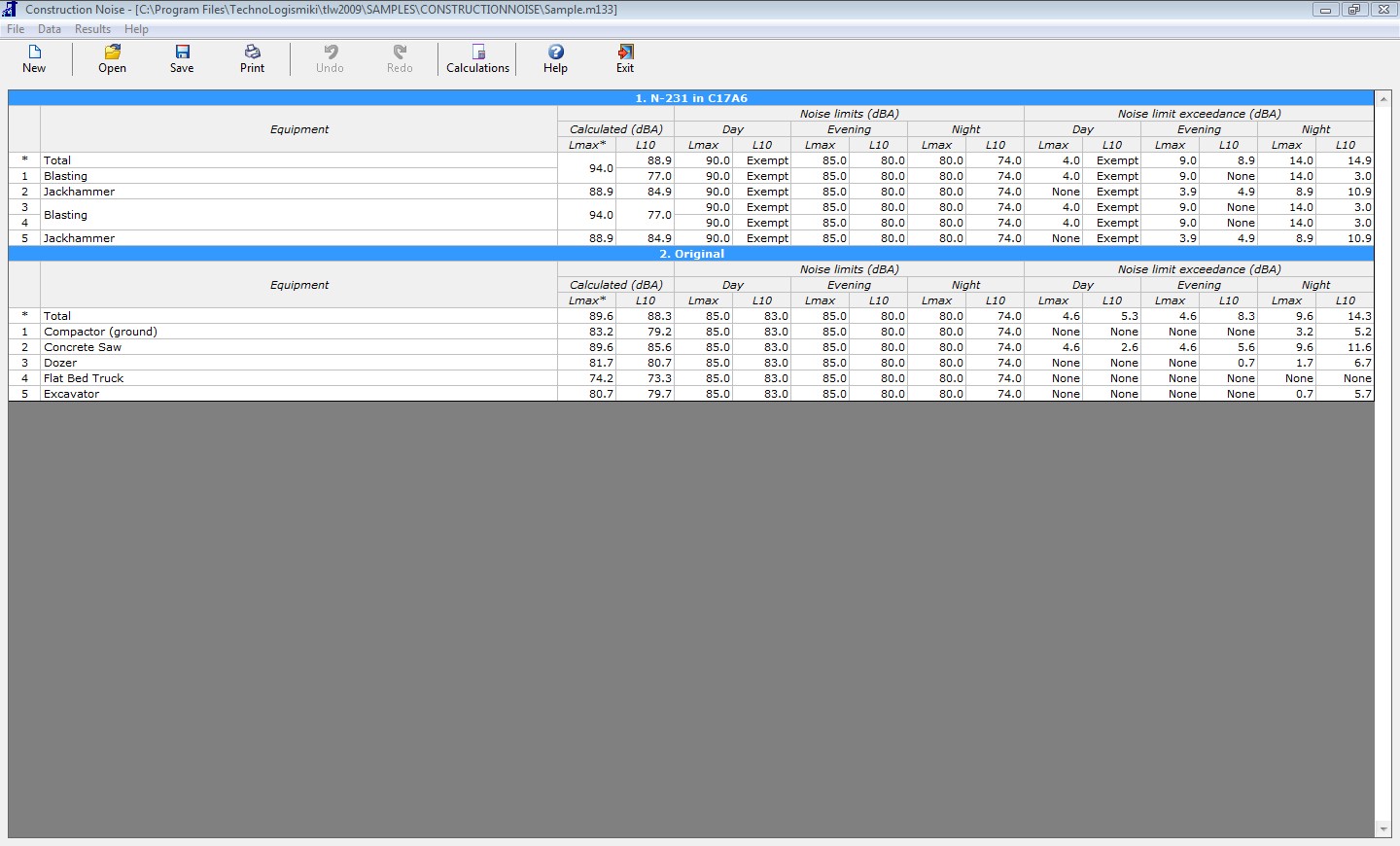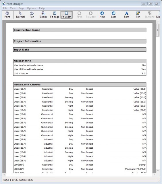 This program is based on the well-known Federal Highway Administration (FHWA) Roadway Construction Noise Model v1.1. It is used to assist in the prediction of construction noise. Due to the fact that construction is often conducted in close proximity to residences and businesses, construction noise must be controlled and monitored to avoid impacts on surrounding communities. In addition to community issues, excessive noise can threaten a construction project’s progress. Each project needs to balance the community’s need for peace and quiet with the contractor’s need to progress the work.