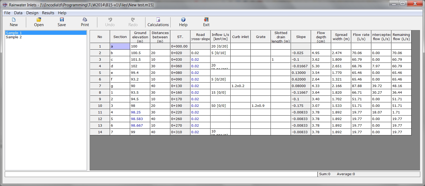 This program calculates the flow in rainwater inlets. The inlets can be grates, curb inlets, slotted drains etc, separately or combined in a road section.