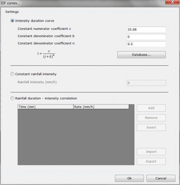 The flow can be input manually or be evaluated by runoff areas and IDF curves.