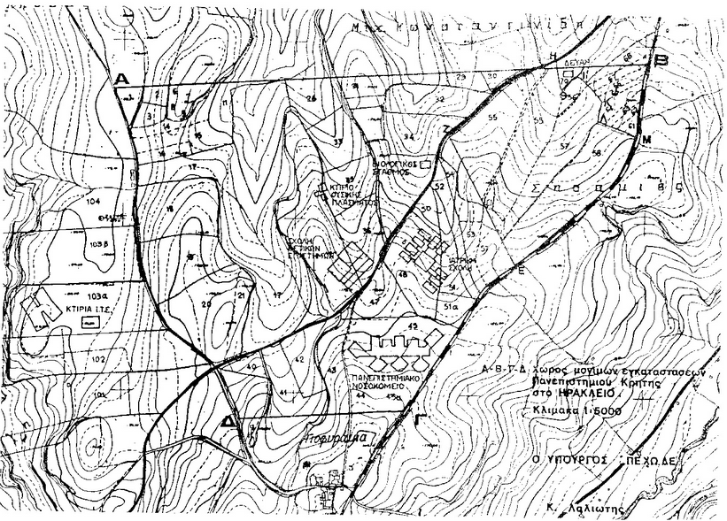 9. Στο χώρο που εγκρίθηκε με την υπ' αριθμόν 7204/1986 απόφαση του Νομάρχη Ηρακλείου Κρήτης για την ανέγερση πανεπιστημιακών εγκαταστάσεων και πανεπιστημιακού νοσοκομείου στο Ηράκλειο Κρήτης, αποχαρακτηρίζονται το τμήμα που φαίνεται στο συν-δημοσιευόμενο διάγραμμα κλίμακας 1:5.000 με στοιχεία Ε-Ζ-Η-Θ-Ι-Κ-Λ-Μ-Ε.
