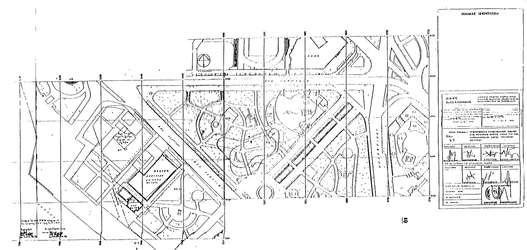 1. Στον κοινόχρηστο χώρο που βρίσκεται εντός του εγκεκριμένου ρυμοτομικού σχεδίου Θεσσαλονίκης και αποτελείται από τα δημόσια κτήματα ΒΚ 2493, ΒΚ 168, ΒΚ 25 και ΒΚ 22, καθορίζεται περίγραμμα του κτιρίου θεάτρου (τέως Βασιλικό Θέατρο), του περιβάλλοντος χώρου και αντλιοστασίου Οργανισμού Αποχέτευσης Θεσσαλονίκης, καταργείται πεζόδρομος και καθορίζεται χώρος πρασίνου, όπως φαίνεται με τα στοιχεία Ρ' Σ' Φ' Φ' Ρ' στο διάγραμμα υπό κλίμακα 1:200, που θεωρήθηκε από τον Πρόεδρο του Οργανισμού Ρυθμιστικού Σχεδίου Θεσσαλονίκης και του οποίου αντίτυπο σε φωτοσμίκρυνση δημοσιεύεται με το νόμο αυτόν στην Εφημερίδα της Κυβερνήσεως.