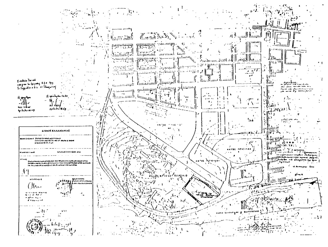 ε. Τα κτίσματα και οι κατασκευές εντός του παραπάνω καθοριζόμενου χώρου τοποθετούνται μετά από σύμφωνη γνώμη της αρμόδιας Επιτροπής Πολεοδομικού και Αρχιτεκτονικού Ελέγχου, ελεύθερα σε ελάχιστη απόσταση 5 m από τα όρια του χώρου και τη ρυμοτομική γραμμή της οδού Πλαστήρα.