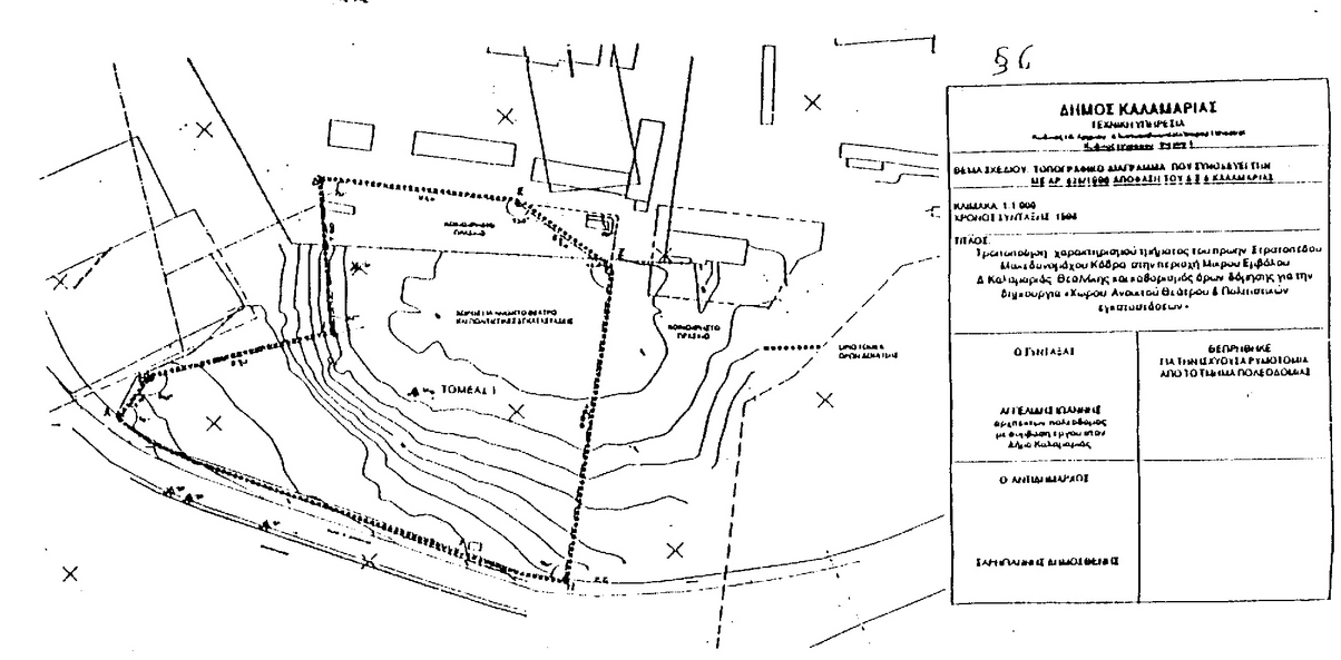 6. Στον κοινόχρηστο χώρο πρασίνου που βρίσκεται εντός του εγκεκριμένου ρυμοτομικού σχεδίου Δήμου Καλαμαριάς (Νομός Θεσσαλονίκης) και ειδικότερα στην περιοχή Μικρού Εμβόλου στο χώρο του πρώην στρατοπέδου Κόδρα, καθορίζεται χώρος ανοικτού θεάτρου και αίθουσας πολιτιστικών εγκαταστάσεων, όπως ο χώρος φαίνεται με στοιχεία ΑΒΓΔΕΖΗΑ στο συνημμένο τοπογραφικό διάγραμμα σε κλίμακα 1:1.000.