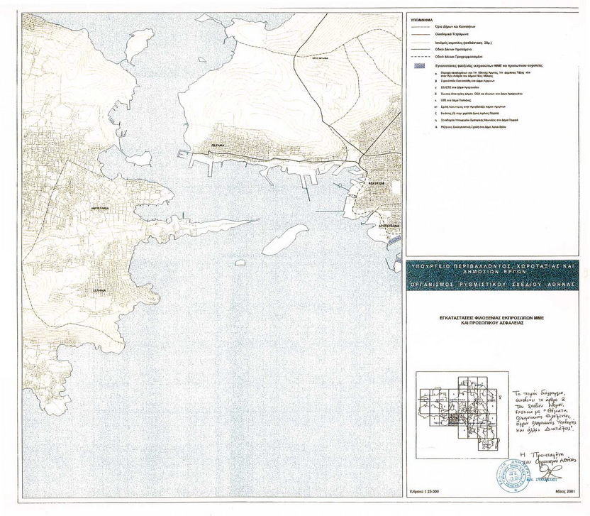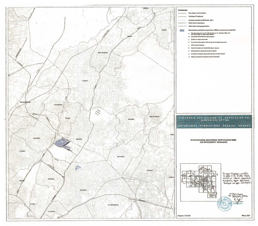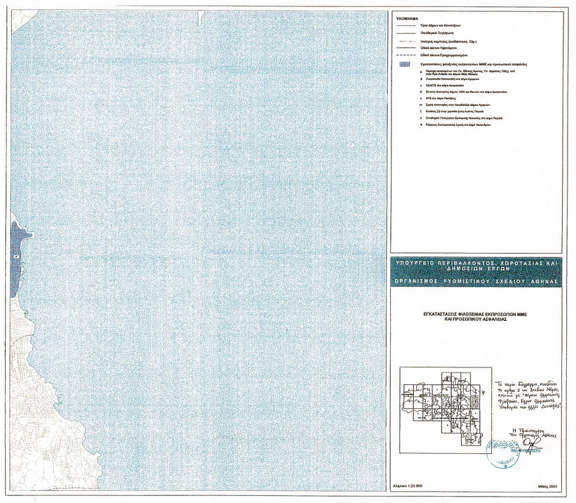 στ. Η έκταση των εγκαταστάσεων της Σχολής Αστυνομίας στην Αμυγδαλέζα του Δήμου Αχαρνών Αττικής. Στην έκταση αυτή επιτρέπεται η επισκευή, μετασκευή και ο εκσυγχρονισμός των υφιστάμενων μόνιμων κτιριακών εγκαταστάσεων, καθώς και η εκτέλεση των αναγκαίων έργων υποδομής. Εφόσον απαιτηθεί η ανέγερση νέων μόνιμων κτιριακών εγκαταστάσεων ή η επέκταση των υφισταμένων, ο συνολικός συντελεστής δόμησης δεν μπορεί να υπερβαίνει το 0,3 και το ποσοστό κάλυψης το 20%. Η περιοχή αυτή, μετά την τέλεση των Ολυμπιακών Αγώνων, θα λειτουργήσει ως χώρος υποδοχής εκπαιδευτικών λειτουργιών και λοιπών εγκαταστάσεων του Υπουργείου Δημόσιας Τάξης.