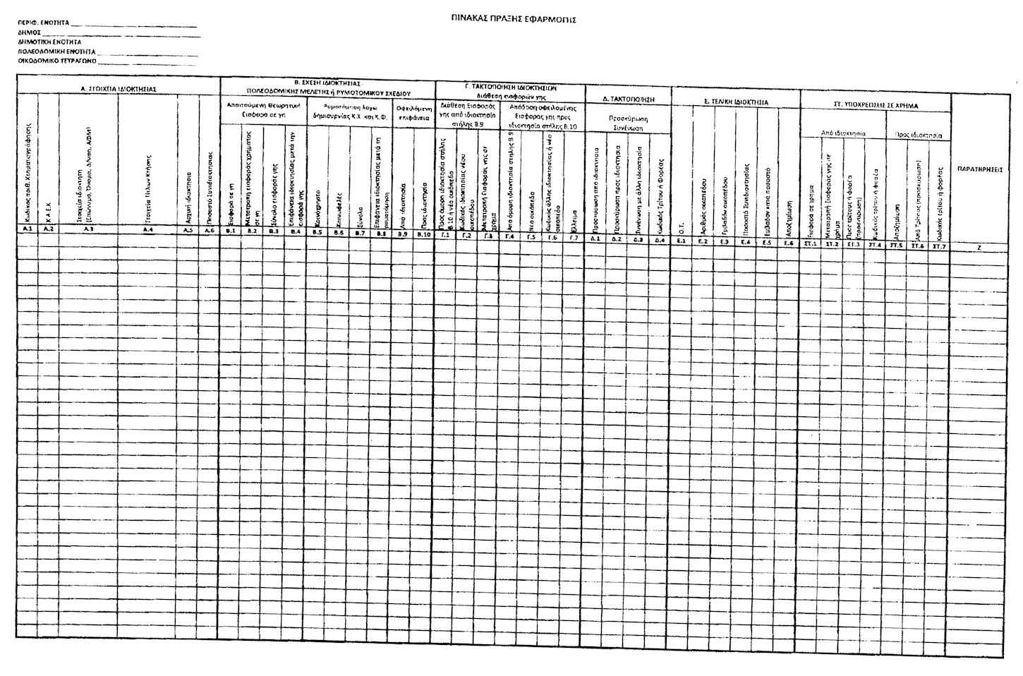 3. Σε περίπτωση που οι στήλες του πίνακα της Πράξεις Εφαρμογής τυπώνονται σε περισσότερες από μία σελίδες, παρά το ότι στο υπόδειγμα του πίνακα όλες οι στήλες προβλέπονται σε μία σελίδα, θα πρέπει απαραίτητα: