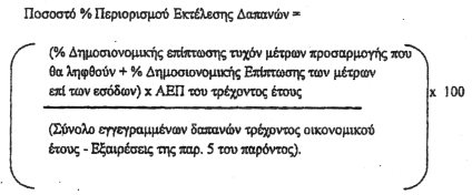 {Το ποσό και το ποσοστό επί του Ακαθάριστου Εθνικού Προϊόντος των δημοσιονομικών μέτρων προσαρμογής σε καθαρή βάση, ήτοι μετά την αφαίρεση της δημοσιονομικής επίπτωσης επί των εσόδων του προϋπολογισμού της Γενικής Κυβέρνησης, σύμφωνα με το εκάστοτε Τεχνικό Μνημόνιο Συνεργασίας (TMU).}
